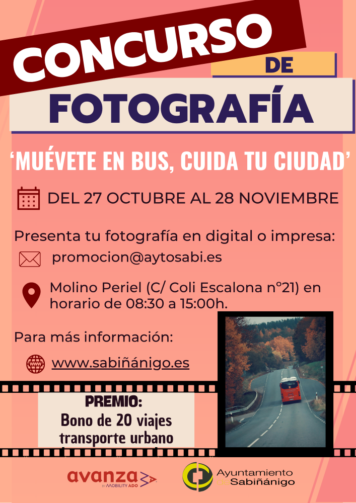 El Ayuntamiento de Sabiñánigo junto con la empresa de autobuses Avanza, convoca el concurso de fotografía “Muévete en Bus, Cuida tu Ciudad”, con el objetivo de fomentar el uso del autobús urbano en la localidad serrablesa como medio de transporte sostenible frente al uso del vehículo privado.