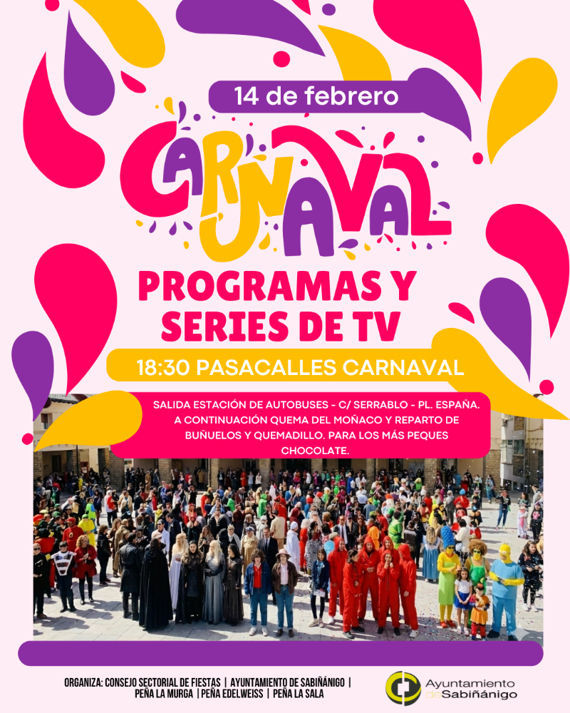 El Ayuntamiento de Sabiñánigo ya tiene todo listo para celebrar su gran fiesta de Carnaval el próximo sábado 14 de febrero. Bajo la temática central de “Programas y Series de Televisión”, las calles de la localidad se llenarán de color, música y los personajes más icónicos de la pequeña pantalla.