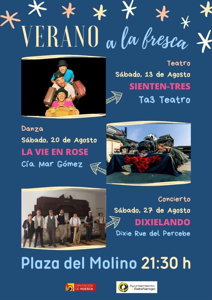 Se plantean tres ciclos diferenciados: “Verano la fresca”, “De placeta en placeta” y “Títeres de verano”, a los que se sumará en septiembre el programa “Días de cuento”. Son tres ciclos habituales en la programación de Sabiñánigo, que ahora se alargan para abarcar los dos meses de verano. Es de reseñar, nos indica la alcaldesa “que todos los actos serán gratuitos, aunque este año ya no será necesario inscribirse, puesto que no existen restricciones por el Covid-19 en este momento”.
