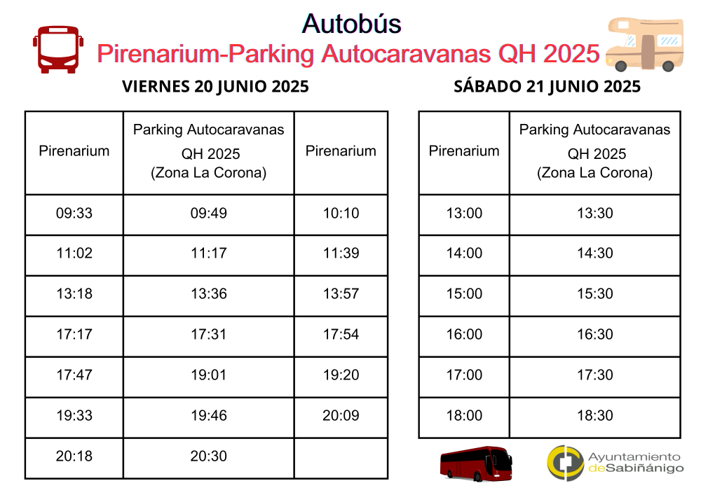 Servicio especial de autobús urbano para conectar el Parking de autocaravanas QH 2025 y Pirenarium Whatsapp: Servicio especial de autobús urbano para conectar el Parking de autocaravanas QH 2025 y Pirenarium Fecha 19 junio 2025 Galería imágenes cat: Deporte, vaobulcary: 2597327 cat: Ayuntamiento, vaobulcary: 2597327 cat: Servicios, vaobulcary: 2597327