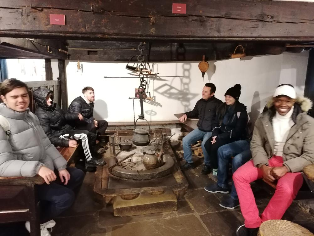 Todos juntos fuimos andando desde nuestro aula hasta el museo donde nos recibió la responsable del museo que nos ofreció una explicación sobre la historia y arquitectura del edificio así como de su contenido basado en mostrar la cultura y la forma de vida de las habitantes del serrablo en la antigüedad.