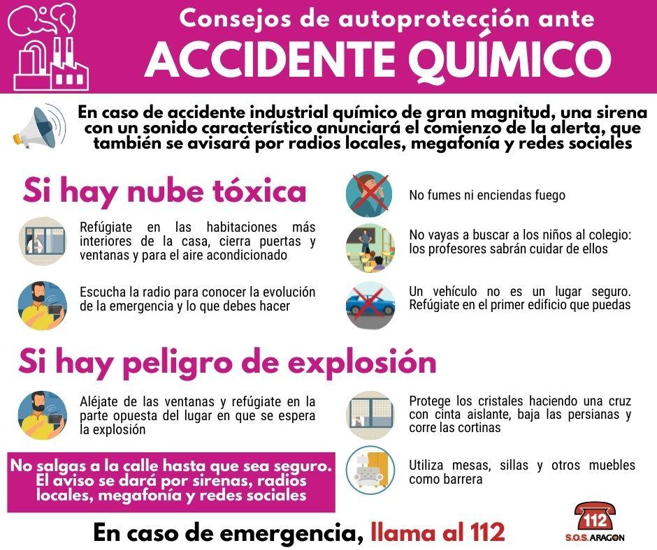 En caso de que ocurra una emergencia química se alertará a la población mediante mensajes de radio, página web oficial y a través de la megafonía local mediante una señal acústica a través de las sirenas.